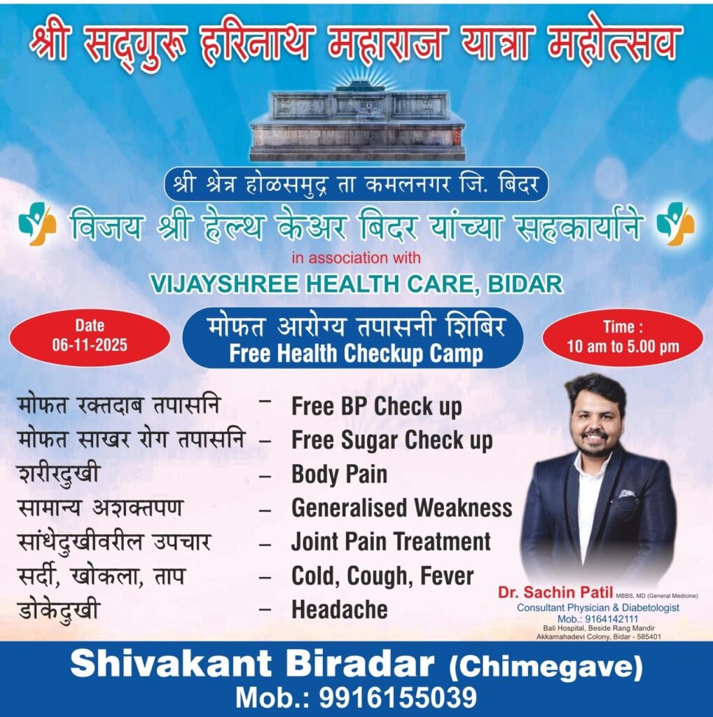 Community outreach programs like this form an essential extension of clinical care, bridging the gap between hospitals and the public. Vijayshree Healthcare, Bidar, under the medical leadership of Dr. Sachin Patil, continues to support preventive healthcare awareness through regular screening activities and patient education initiatives.